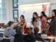 Mens Choir members Harrison Caplin (far left), Philip Wah, Max Glasman, Antonio Selitto and Max Thomas perform a valgram for senior Jenna Billingsley during her fourth period english class. Both choir and band performed these valgrams throughout the day as a valentines day tradition.