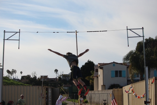 Nicosia gracefully begins his descent onto the mat below, after performing a successful vault.