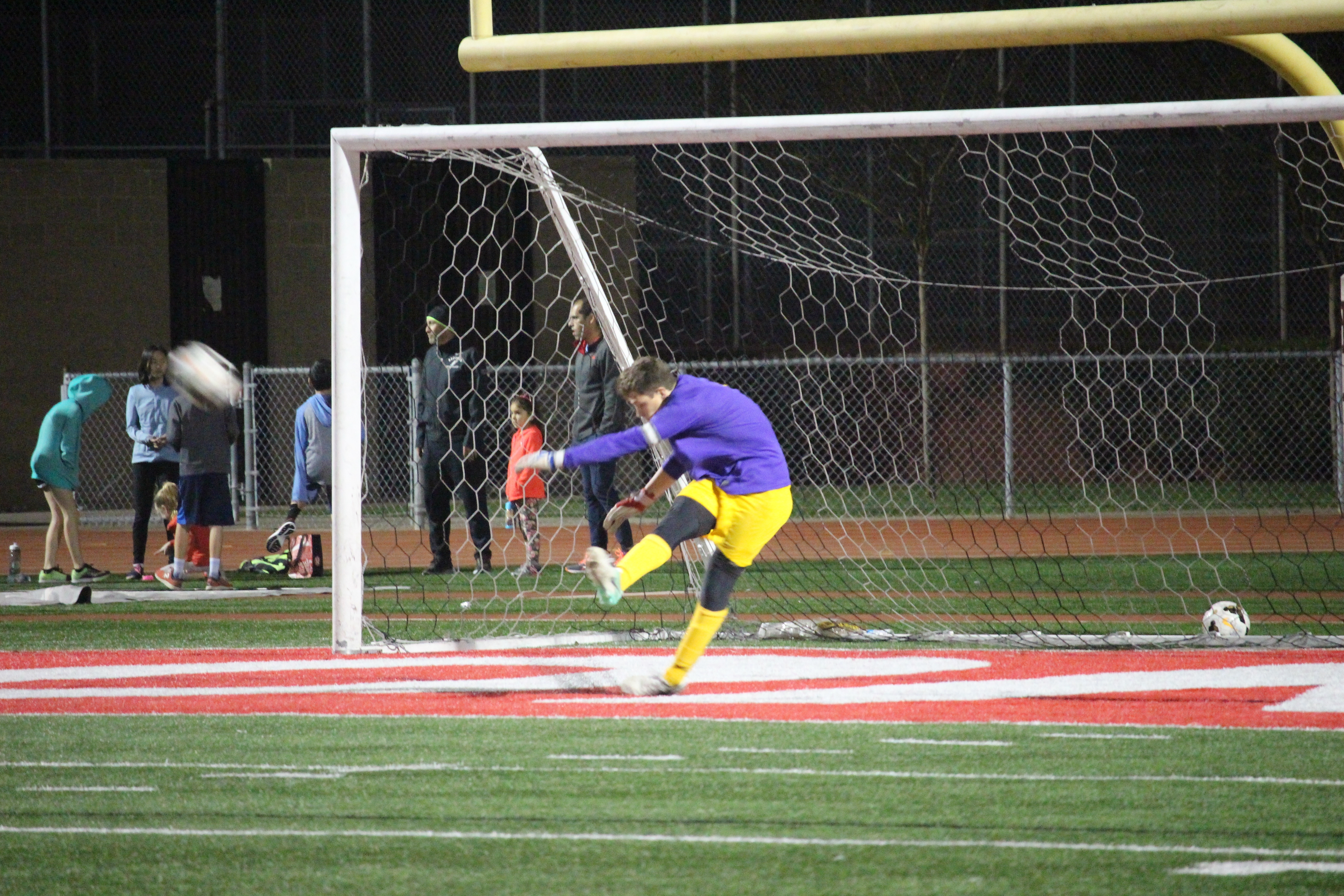IMG_1375 Senior Goalie Andrew Fasano boots the ball up the field in a previous game. On Jan. 26 Costa lost to Peninsula 3-1.