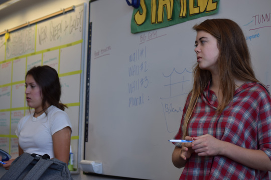 Brogan Tyrer / Daily Photo / La Vista September 26, 2016 La Vista Our Daily Photos 0 Seniors Whitney Davis (left) and Kalea Frank (right) lead a planning session for this year’s Homecoming Dance in the ASB room during fifth period. ASB members formulated various ideas while Davis and Frank organized them on the whiteboard.