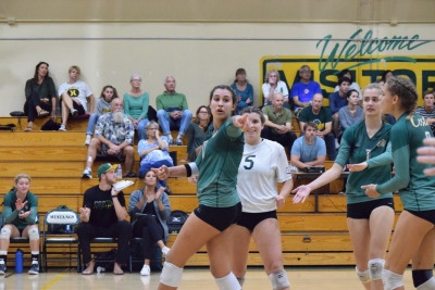 Junior Lea Ungar serves the ball in Mira Costa’s quarterfinal game against Edison High School.Senior Amanda Montag celebrates by pointing to one of her teammates after scoring a kill versus Edison.The Girls Varsity Volleyball team celebrates their win over Edison High School in the CIF Southern Section quarterfinal on November 5, 2016.Senior Alexa Underwood celebrates a kill to close out the third set of the match.Senior Amanda Montag prepares to strike the ball over the net to score a point against Edison on November 5th.