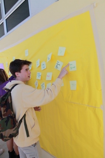 Junior Liam Carrol puts his sticky note up on the Dream Wall during Costachella. During Am Office hours Costachella was held with the theme of Mental Health Awarness we’re students were able to partake in a multitude of activities.