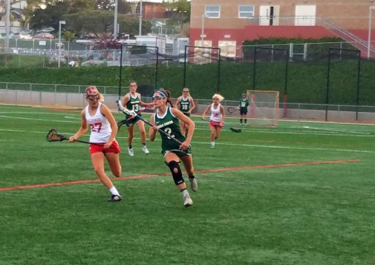 Redondo varsity lacrosse player plays tough offense against Costa on Tuesday April 25. Costa players held their ground against Redondo at the twelve line to prevent them from taking a shot.Costa varsity switches into defense after losing the ball on the opposite end of the field. The three Costa girls attempt to box in the Redondo player in order to corner her.Redondo tries to defend their goal as Costa goes on the offense. Costa variety wants to keep the ball in motion in order to look for an opening in Redondo’s defense.Costa varsity runs towards the offense line on the other side of the field. Field players must us speed in order to run against each other when on offense.Costa senior Kelli Marks holds the ball in his stick as she runs towards the baseline. Kelli is looking for an opening to pass the ball, while guarding against a Redondo.