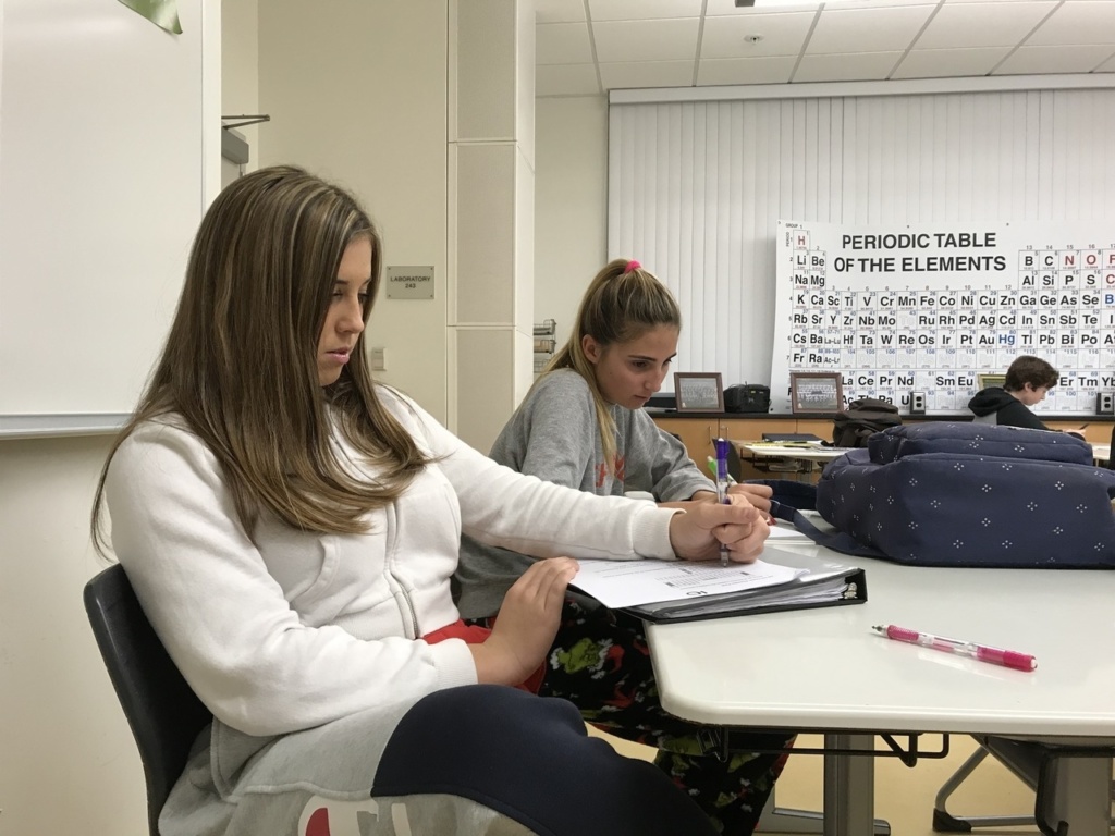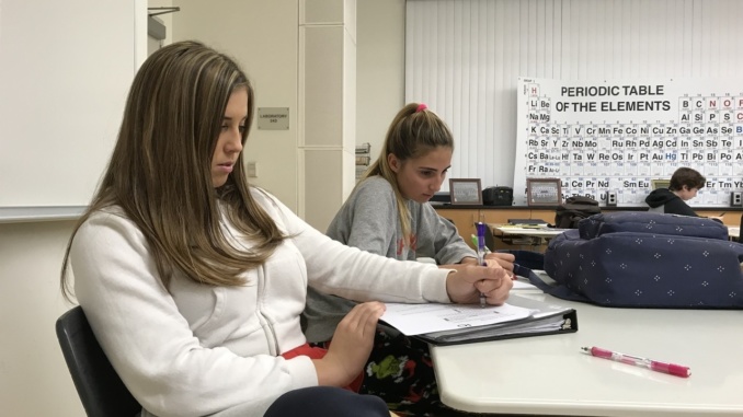 Faith Bolin / Daily Photo / La Vista / February 4, 2019 La Vista Our Daily Photos, Photojournalism 0 December 17, 2018 Sophomores, Piper Gordon and Ava Gallien, work in class while wearing pajamas for pajama day. They started off finals week being comfy and cozy. photo by Faith Bolin faith bolin