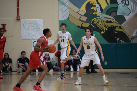 Costa plays high defense on Redondo in their defensive zone in the third quarter.