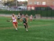Two opposing players chase after the ball, trying to pick up the ground ball. Field players must use speed and strength to win ground balls against opposing players.