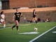 1. Senior Trever Van’t Hof is setting up a warm-up drill, placing down cones a few yards apart from each other on the 30 yard line. The girls varsity soccer team started to warm-up an hour before game time.