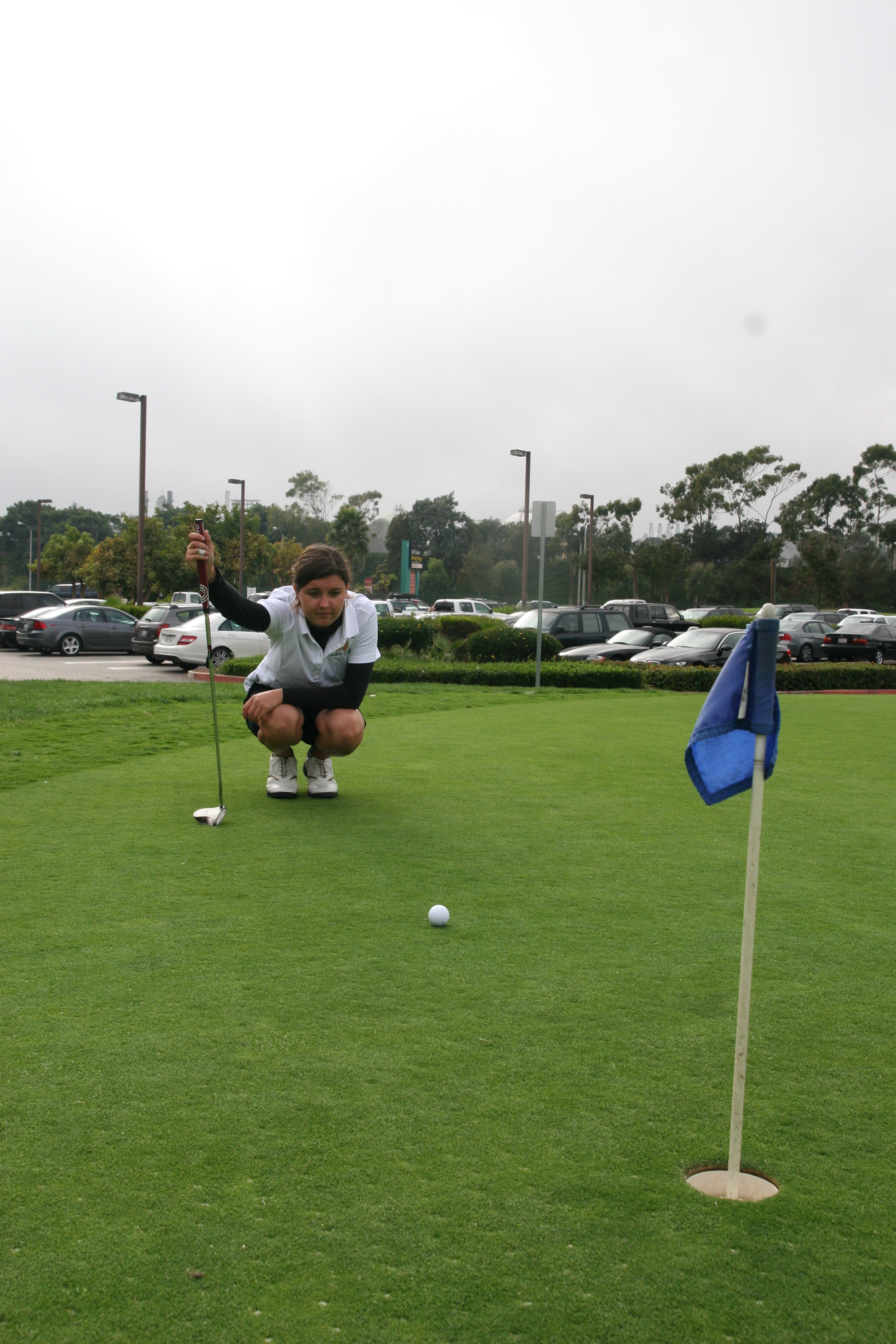 A member on the team waits as the ball moves towards the hole. Mira Costa girls golf team fell to Palos Verdes 196-209 on Tuesday.