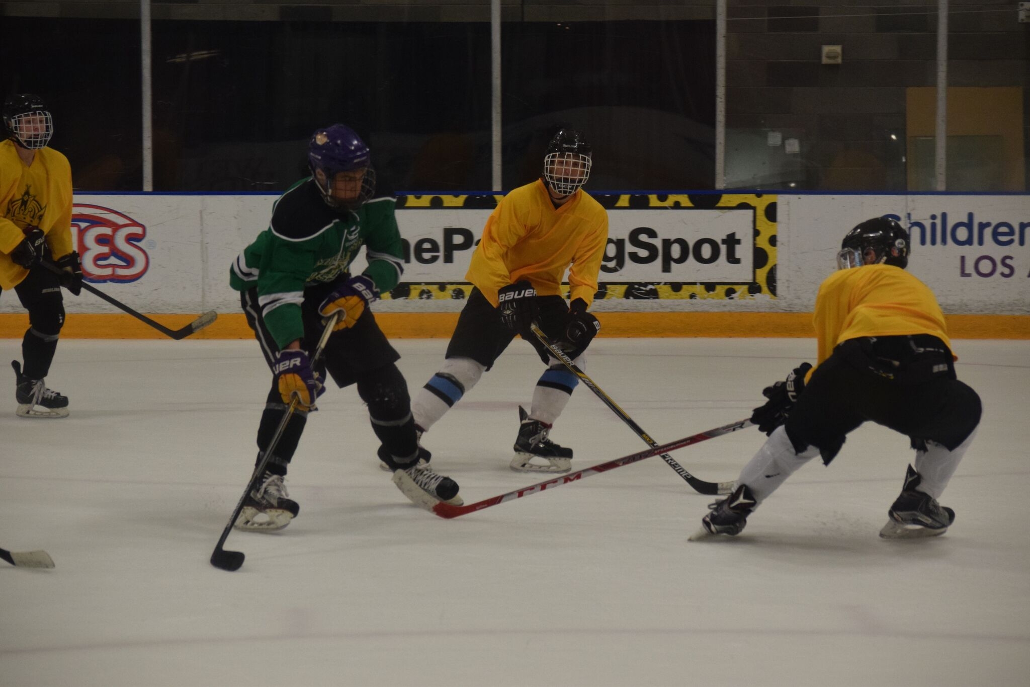 The Mira Costa hockey team (green) fell to El Segundo High School, 6-1, at the Toyota Sports Center on Thursday. The Mustangs reached the closure of their season after the game ended with a record of 1-6-2.