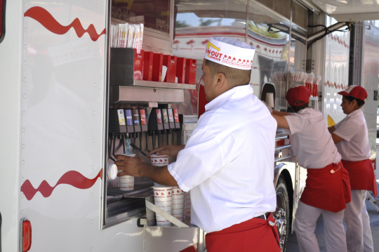 A group of In-N-Out workers fills up drink cups with either Powerade or lemonade during 4th period to prepare for the large amount of students that will be coming to get In-N-Out for lunch. Students that had honor roll last semester received In-N-Out for lunch as a reward this Tuesday.
