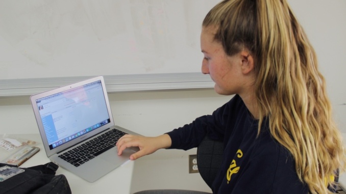 Junior Jackie Blake signs up for her next year classes on Naviance during lunch time in her 5th period classroom. All classes must be chosen soon, because the course selection window will closed to all students this Friday, March 30th.