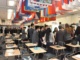 Boys Rugby players perform a tackle-pass drill where one player sets down a ball, another grabs it, and the last tackles the player with the ball.Girls Rugby players practice their passing by rotating the ball down a line of four girls.Girls Rugby players huddle with their coach to discuss the team’s strengths, weaknesses, and how to improve in the future.Boys Rugby players practice their tackling.Girls Rugby player pass the bass to each other while running from one side of the field to another.