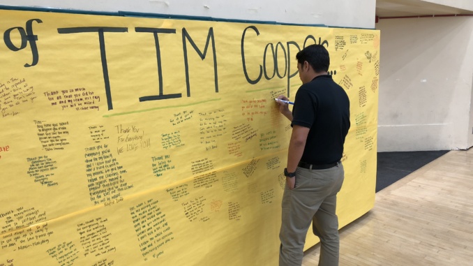 Following the ceremony, a reception took place in Mira Costa’s Fisher Gym, where food was served and pictures were hung up of Cooper throughout his years at Costa, scattered on the walls. Everyone who attendees were also able to write notes about things they loved about Cooper. Costa Principal Dr. Ben Dale allowed everyone to write directly on the walls, as the gym will be torn down in January.