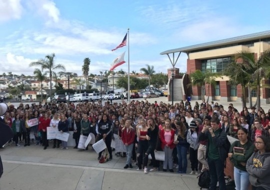 Many students gather in front of the office for the Walk Out that took place nationwide at 10 am. The walk out was to protest gun violence at schools and lasted 17 minutes.
