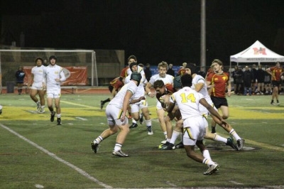 Junior Evanson Frank-Love runs to stop the player on the other team from scoring a try against Costa. Frank-Love later went on to stop the other team from scoring many times.