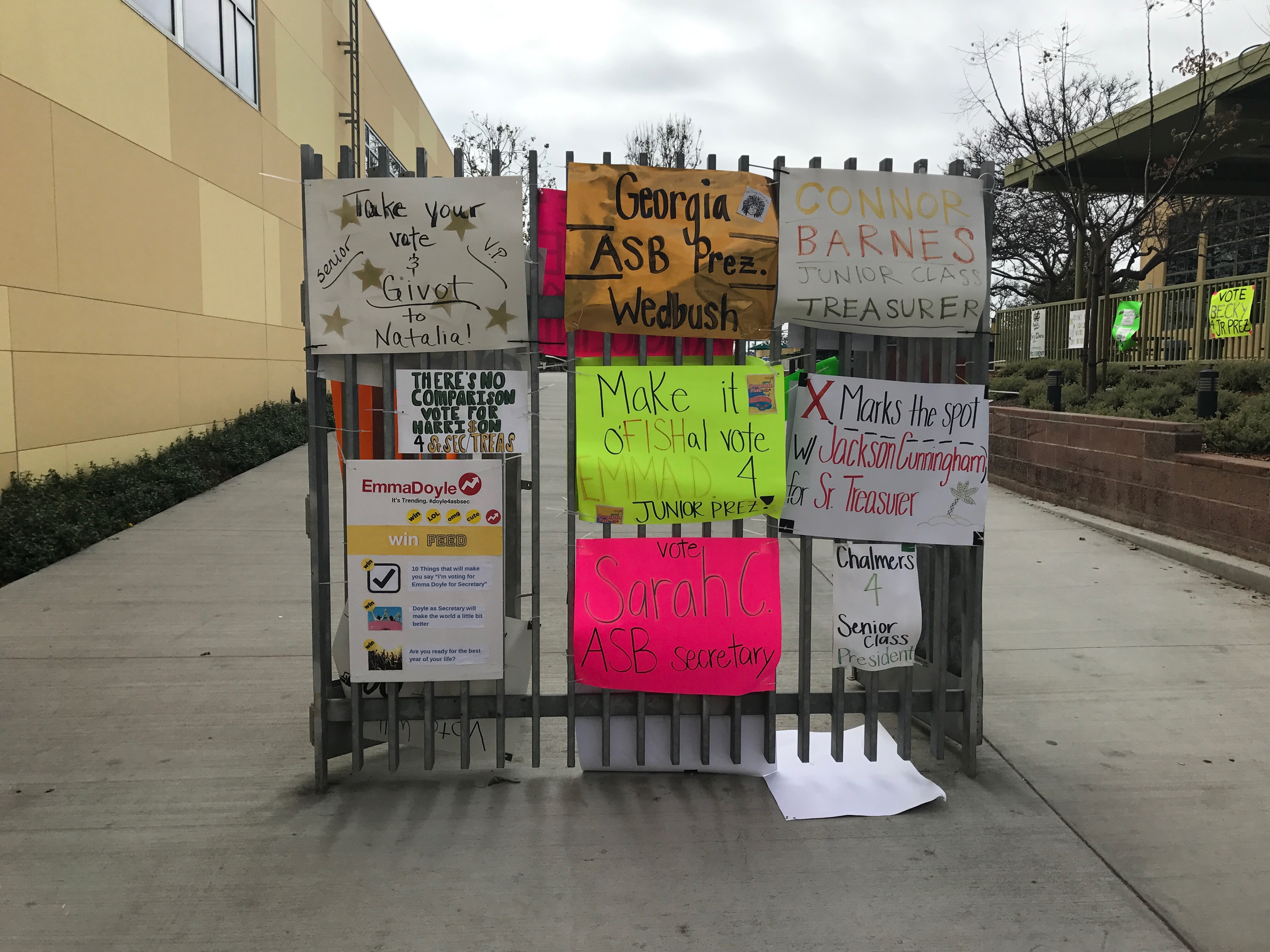 Associated Study Body candidates have signs and posters across campus to gain the support of voters. Students will vote in the election on Wednesday during second period.