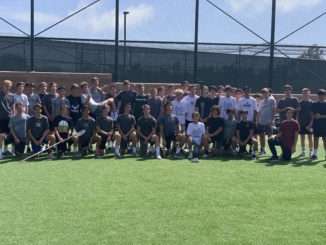 The boys lacrosse team setting up for a group photo. They have conditioning on Mondays and Fridays.