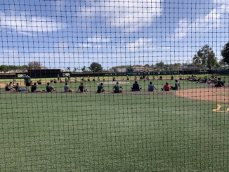 Junior Petey Halplin, practices his swing for the spring season. The JV baseball team is doing batting practice all week to practice fundamentals.