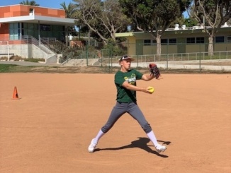Sophomore, Katie Mackechnie, pitches to her teammate after school for practice. Softball is in the off-season training for the spring season.