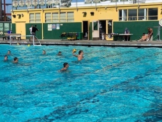 Senior Finn Condren, and his teammate practice shooting during waterpolo practice after school. Waterpolo practices before school in the morning and after school every weekday.