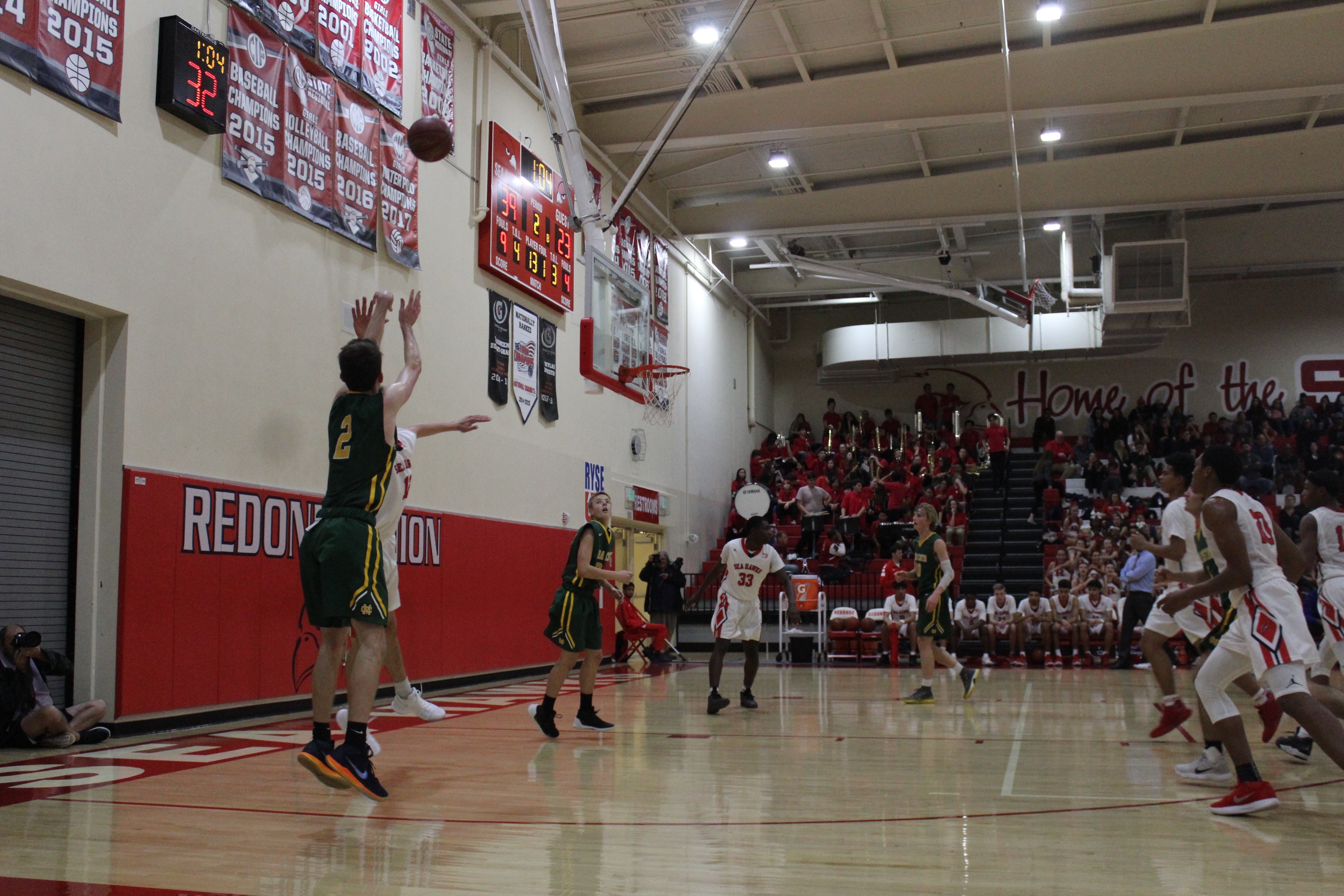 Guard Lucas Hobbs pulls up for three in a previous game. Costa boys basketball team fell to the Inglewood Sentinels 60-56 in an away game on Feb, 6th.