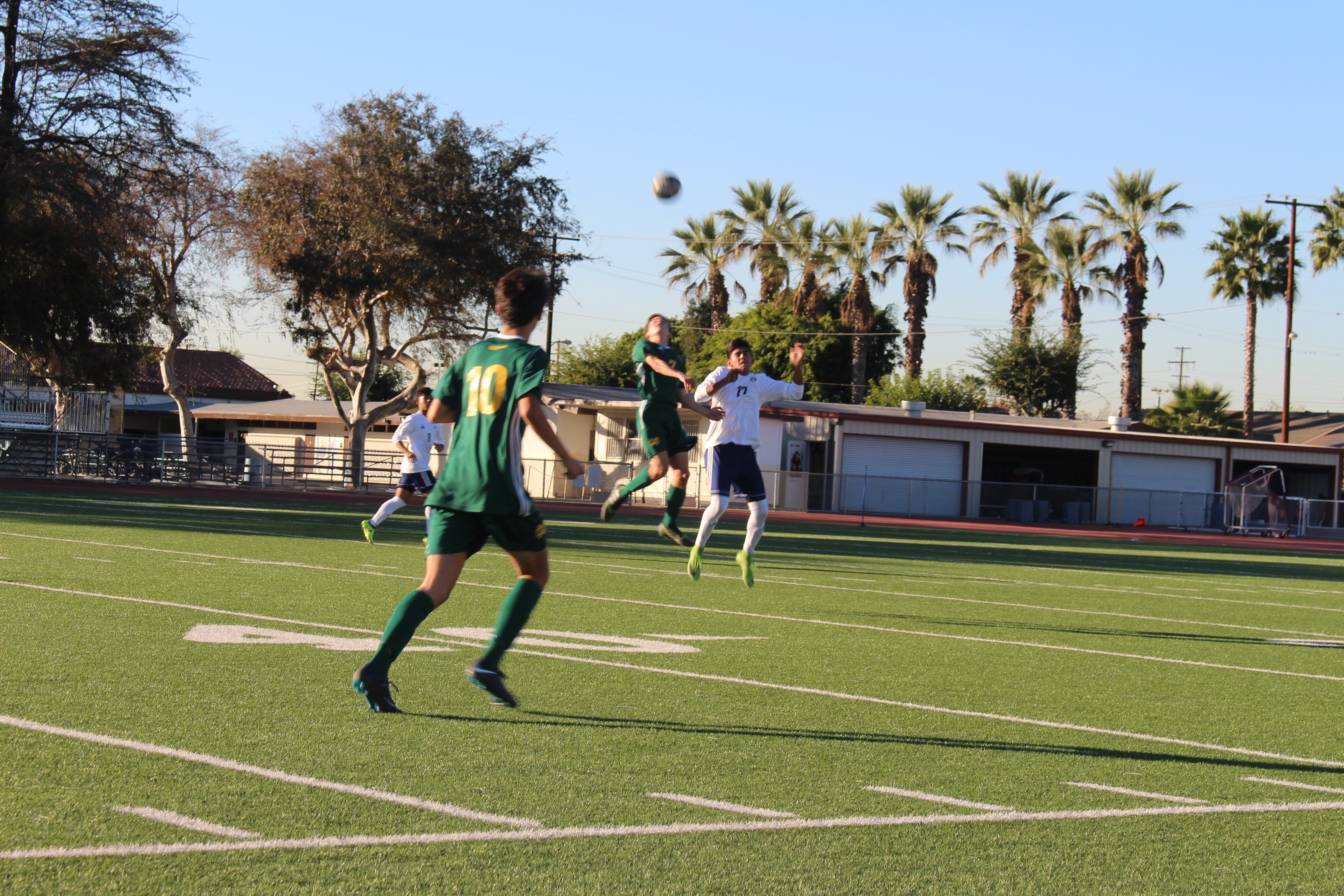 IMG_0983 (1) A Costa player jumps to head the ball in a previous game. The Mira Costa boys soccer team routed Inglewood high school 10-0 at home on Friday, Jan. 18.