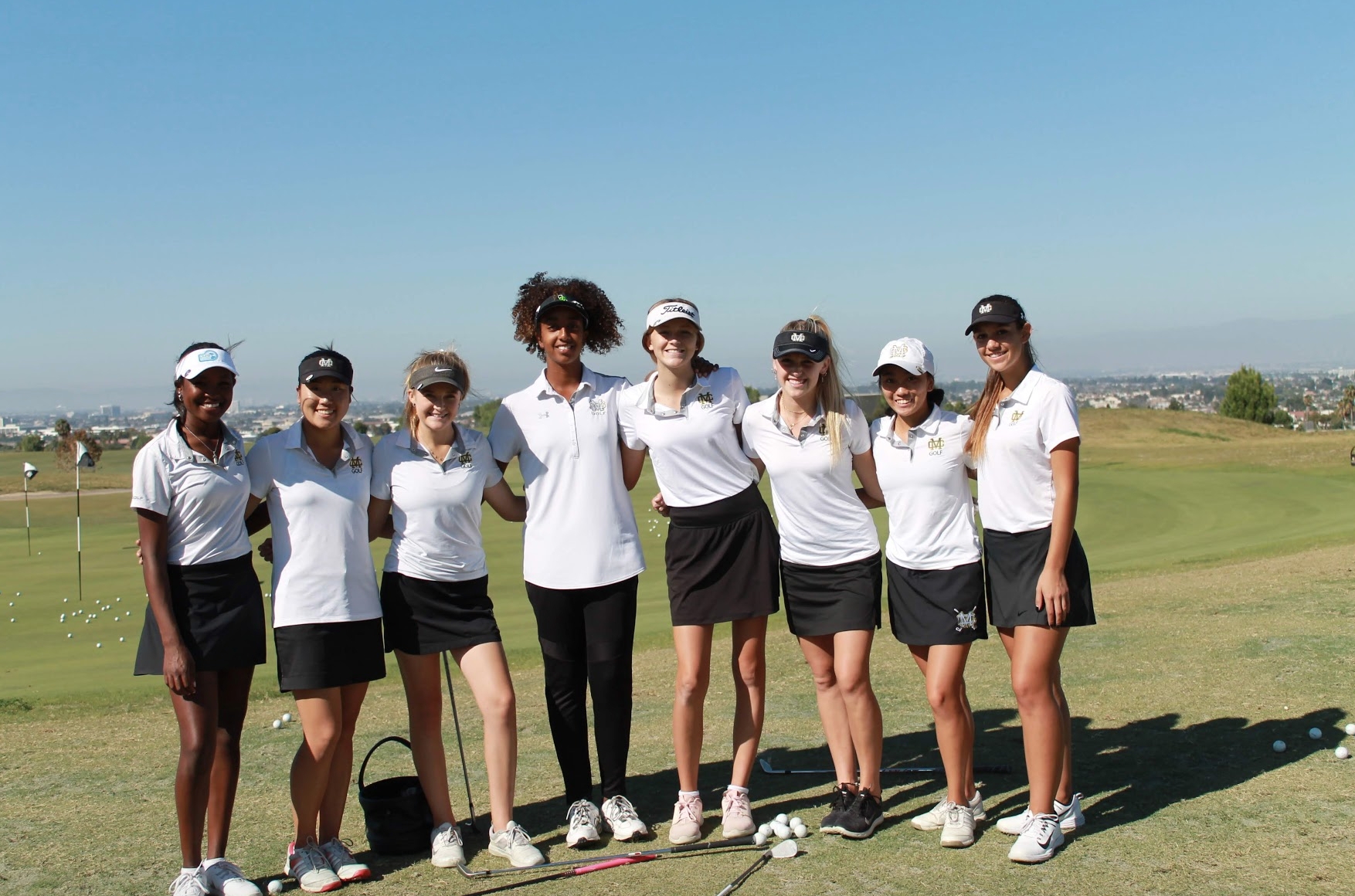 Girls golf team poses on their course as a unit. Three of the players were awarded Bay League players of the year. Photo courtesy of Drew Rohm.