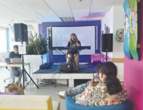 Walking in, the space felt alive.The first 100 people to register scored free T-shirts, instantly giving the event a fun and exclusive feel. The atmosphere was full of energy, with walls covered in paintings, stations set up for hands-on creativity, and the sound of live music resonating through the space.