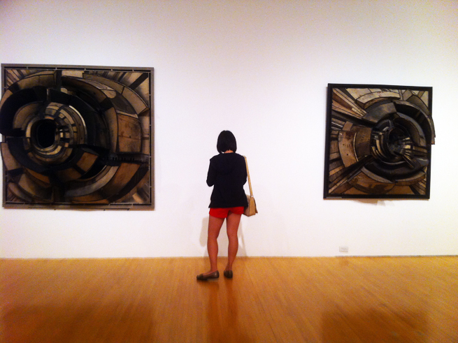 In the first of 11 rooms, patrons see paintings by the Italian Lucio Fontana that take the form of canvases that have been stabbed with an awl in circular patterns. These are complemented nearby with layers of newsprint painted black, works by American artist Robert Rauschenberg. Although all of these paintings are meant to convey post-war destruction and emptiness, they come across as only somewhat artistic and don’t represent true merit.