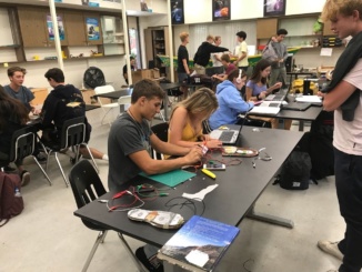 Senior, Kevin Hefner, practices his symphony with his fellow band members. The band practiced for upcoming performances and held team bonding exercises to build chemistry.