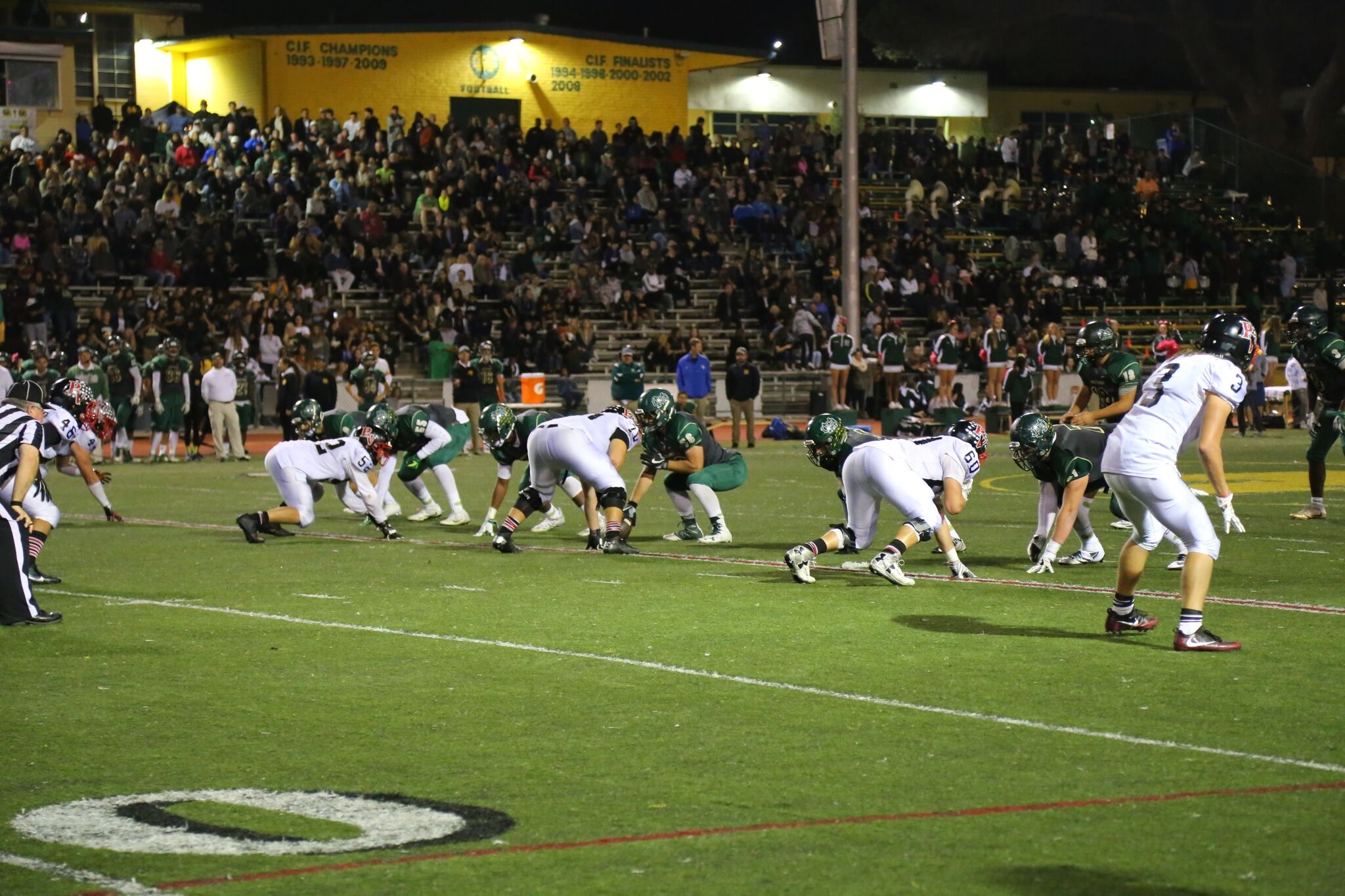 (Right Corner) The Costa offense and junior quarterback Reed Vabrey prepare for the snap. The Mira Costa football team was defeated by St. Francis High School, 48-21 at St. Francis High School on Friday.