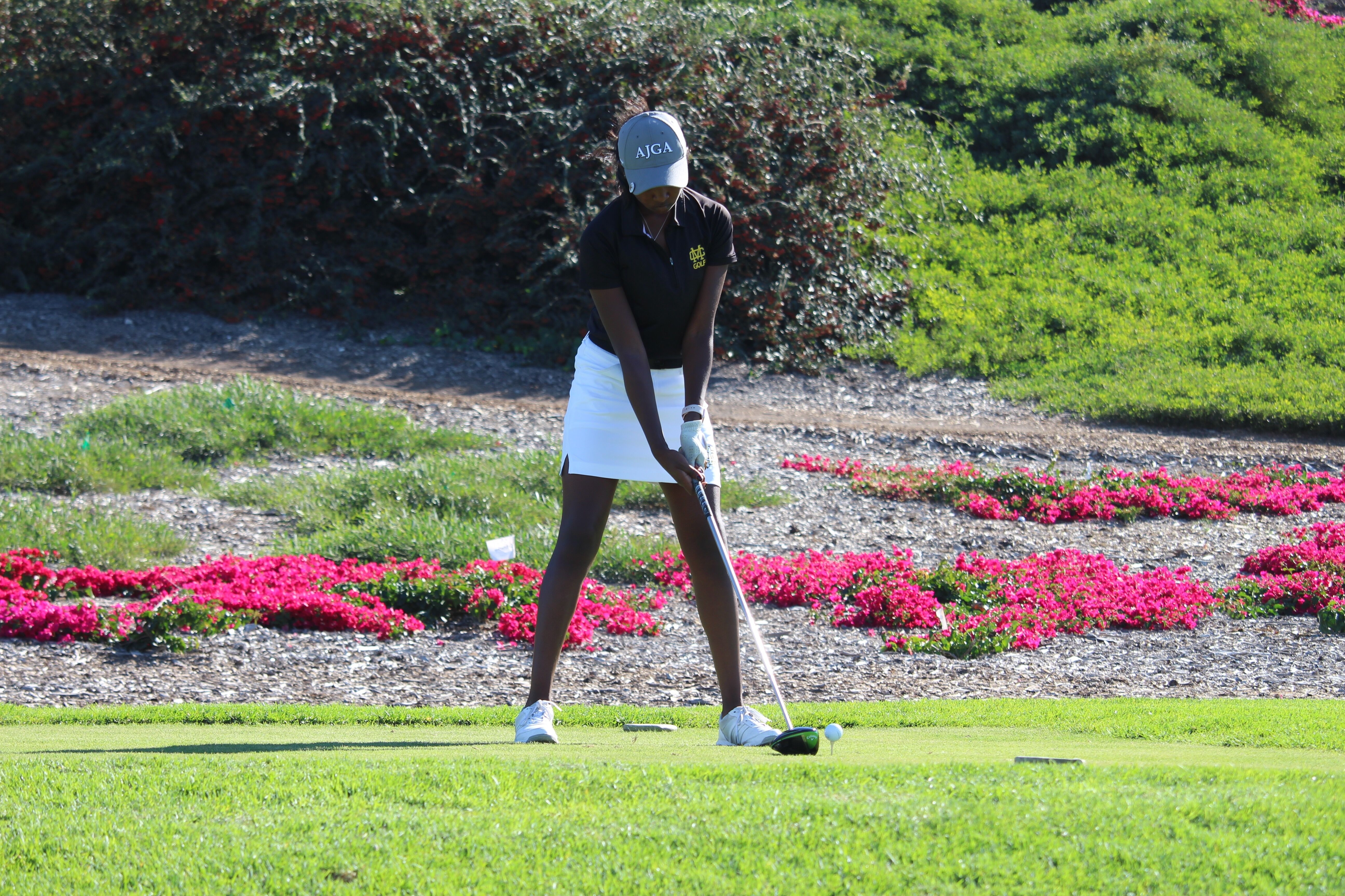 hFZxYyQa Senior golfer, Shani Waite, tees off in a previous match. The Mustangs fell to Diamond Bar 216-201.