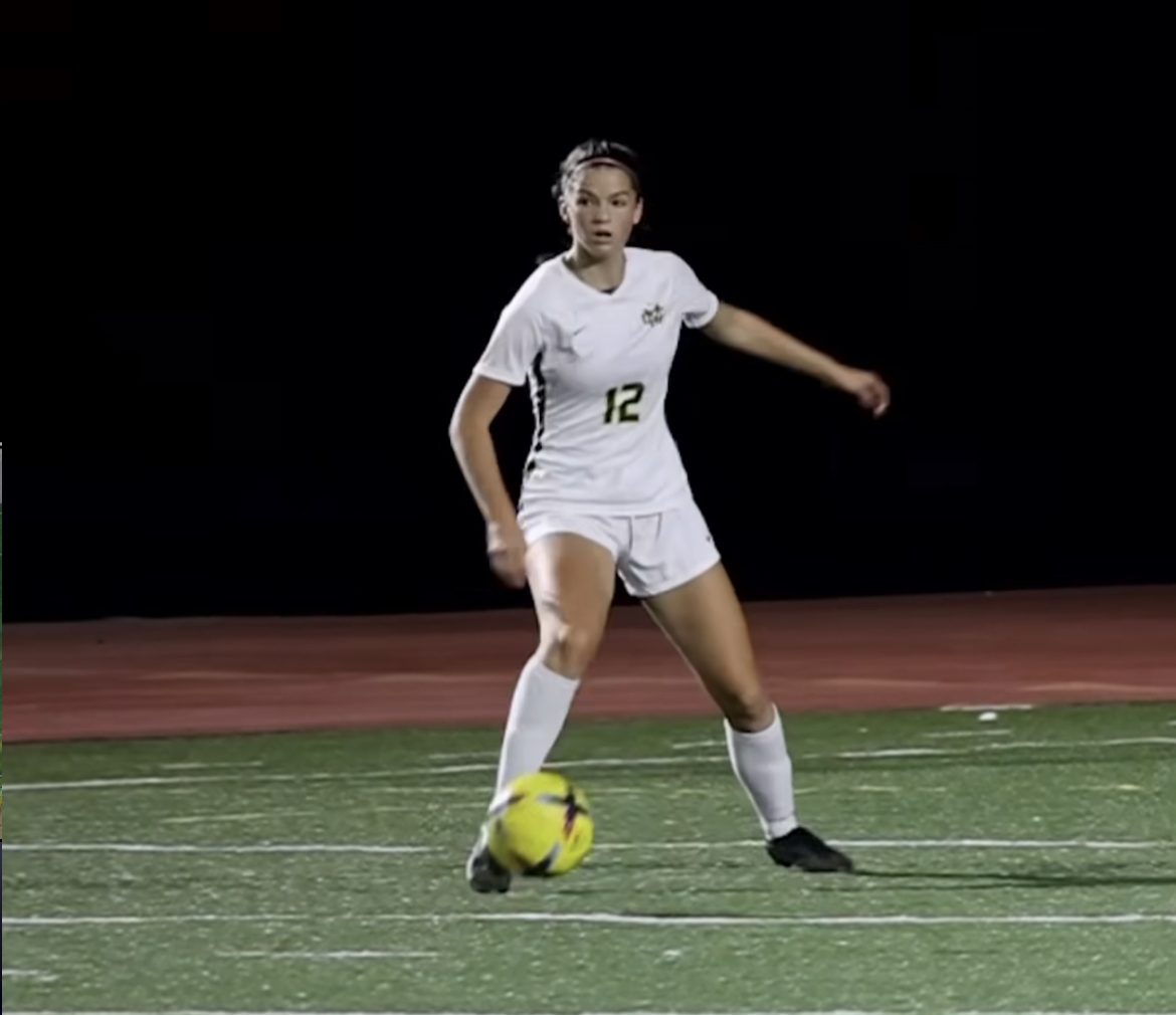 IMG_2076 HANDLES: Sophomore Mary-Kate Brown controls the ball. The Mustangs defeated West,3-0, last Monday.