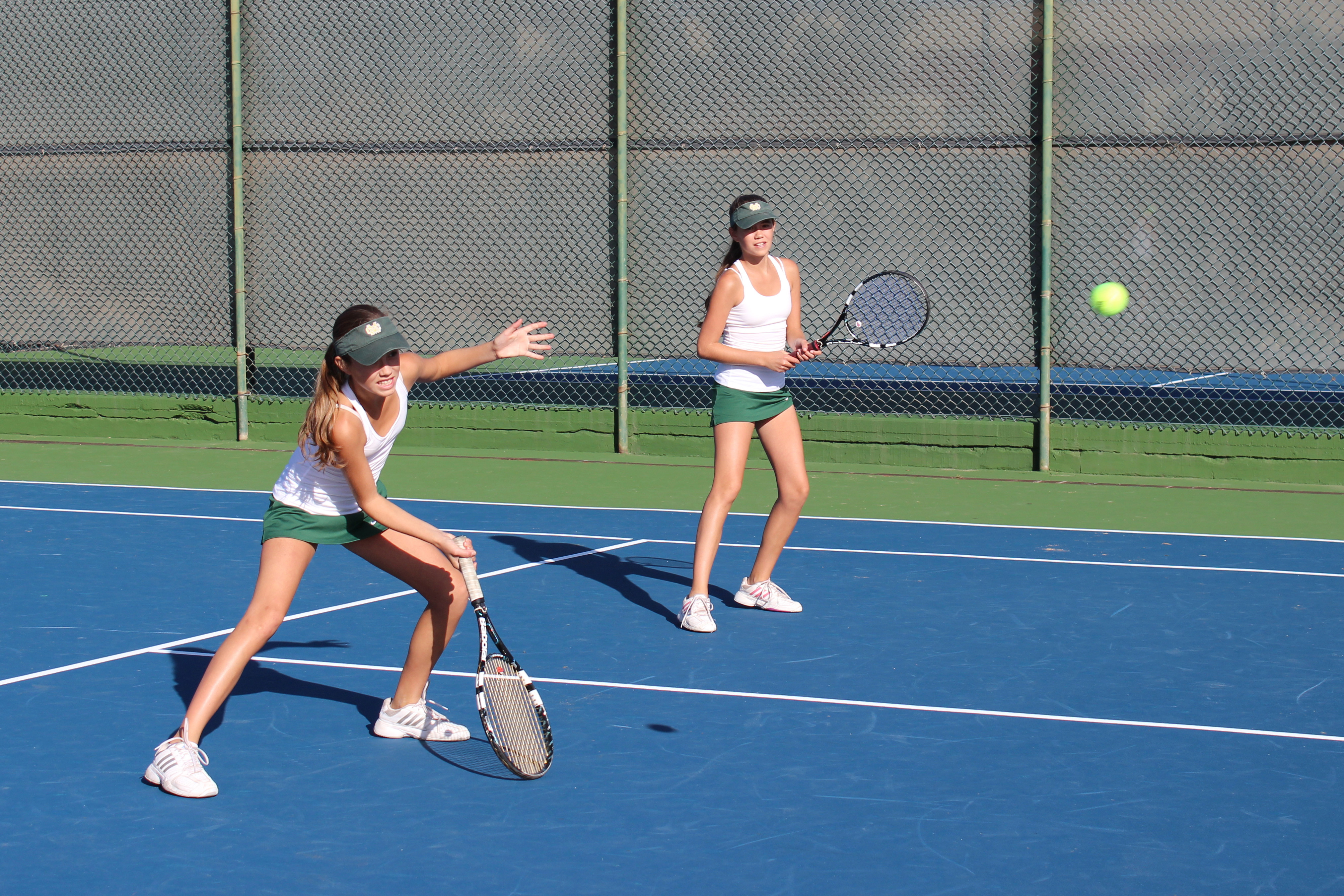 The doubles team of senior Sidney Ascher with freshman Madi Giese played in a close match against Louisville juniors Jessica Chatfield and Sagonia Lazarof. Ascher and Giese struggled in the beginning, but came back to win 7-5.