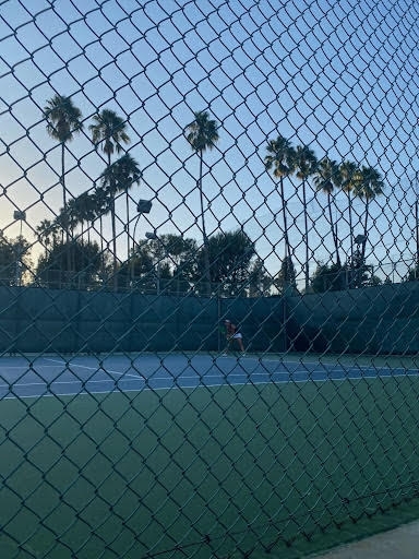 RECEIVING: Senior single player, Haily Huynh receiving against Harvard Westlake number 3 seed. Huynh won her match 6-4. Photo courtesy of Ella Lokier.
