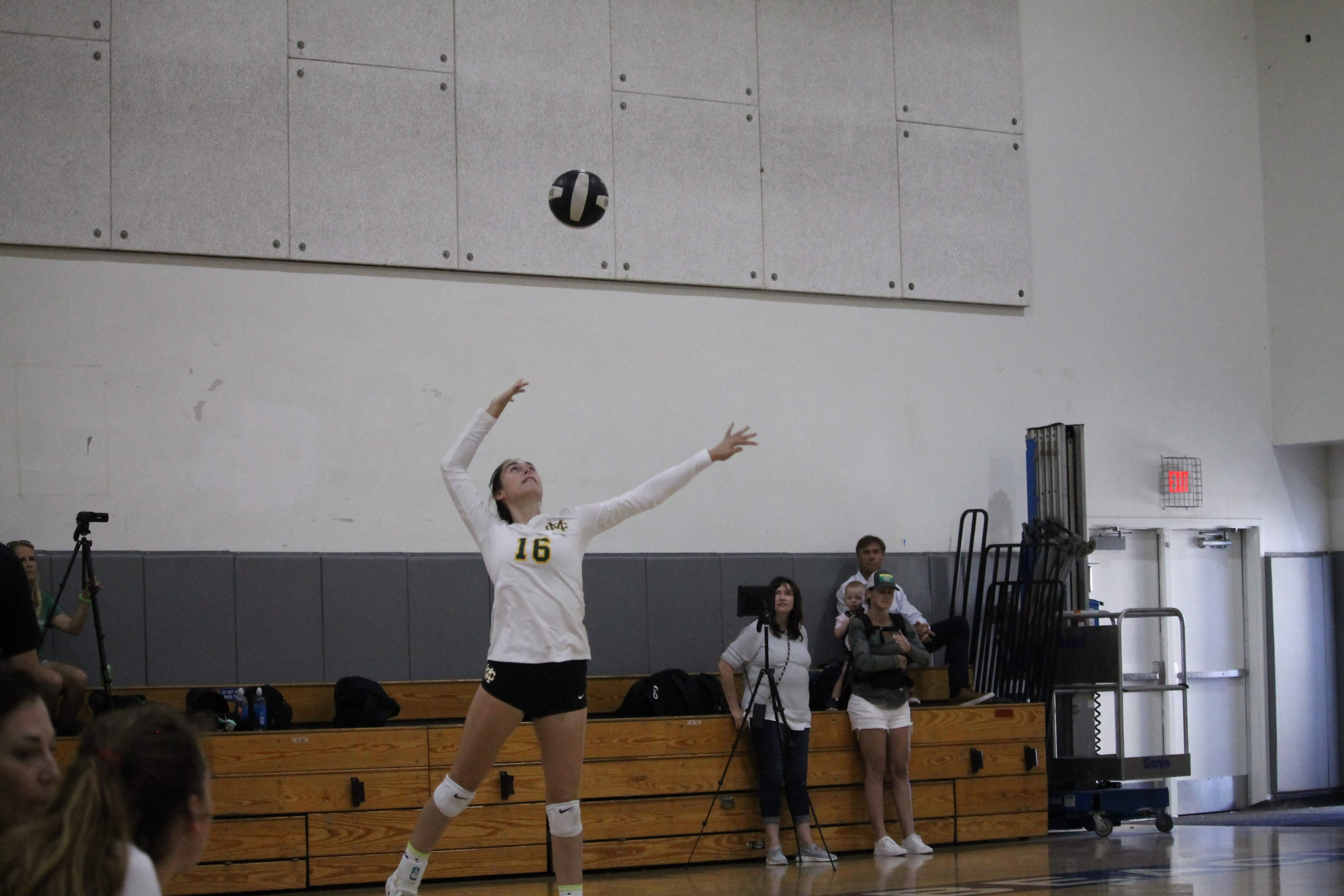 IMG_4573 Senior Jenny Jenks serves up a ball in a previous match. Photos from the Nike Tournament of Champions were unavailable at the time of publication.