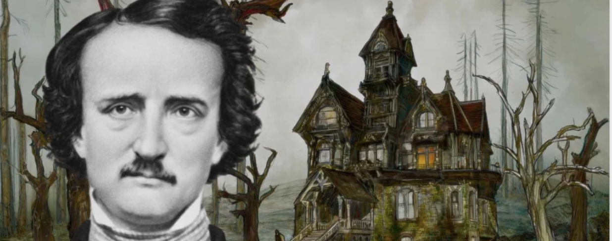 “The Fall of the House of Usher” is a tale by Poe inspired by the genre of Gothic Literature.Poe uses a castle with shadowy corners set in the mid-19th century. The House of Usher is dark and appears to look haunted. The use of this setting highlights the spooky atmosphere of the house.
