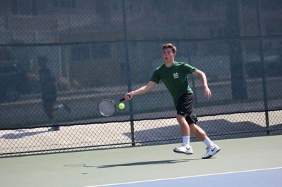 Sophomore Matthew Poh serves the ball to a player on University High Schools team at their CIF game. Poh went on to win his game against his opponent to help his team.Junior Ben Kromansky runs for a ball during his singles match during CIF. Kromansky later went on to win his match to try and help Costa win.Sophomore Kyle Sillman serves the ball during his doubles game at the boys Varsity CIF game on Monday after school. Mira Costa lost against University High School during their third CIF game.Sophomore Ethan Han hits the ball back to the opponent during his doubles match at the Varsity tennis game. Han later went on to help receive many of the hits to help his partner.Sophomore Alex Fry receives a ball to help win the point during his doubles match with Han. Costa went into the third round of CIF, but lost against University High School.