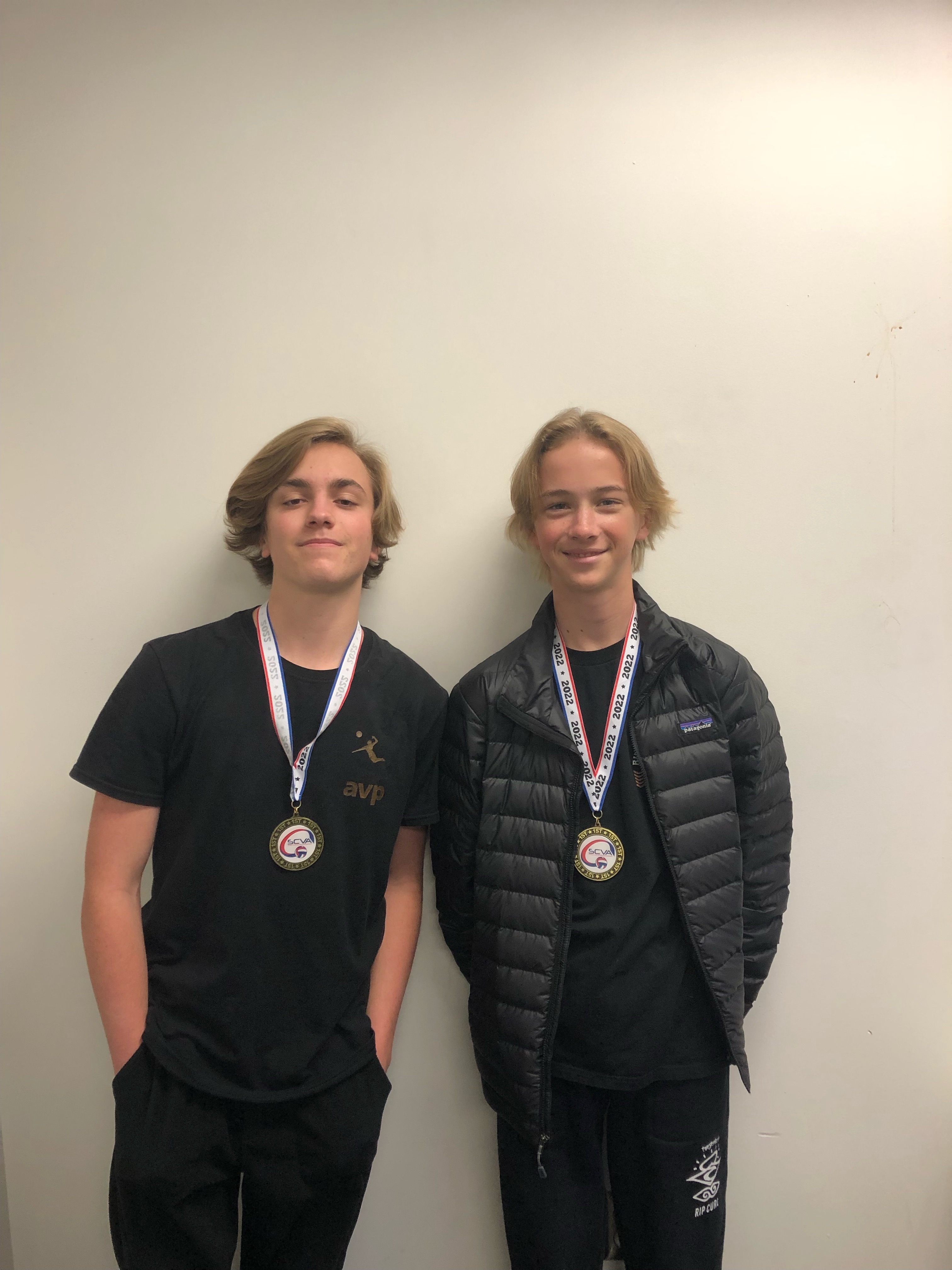 VICTORY: Zach Chapin and Johnny Dykstra pose with their first place medals from the USA Beach Tour National Qualifier Tournament. Photo courtesy of Lily Sexton