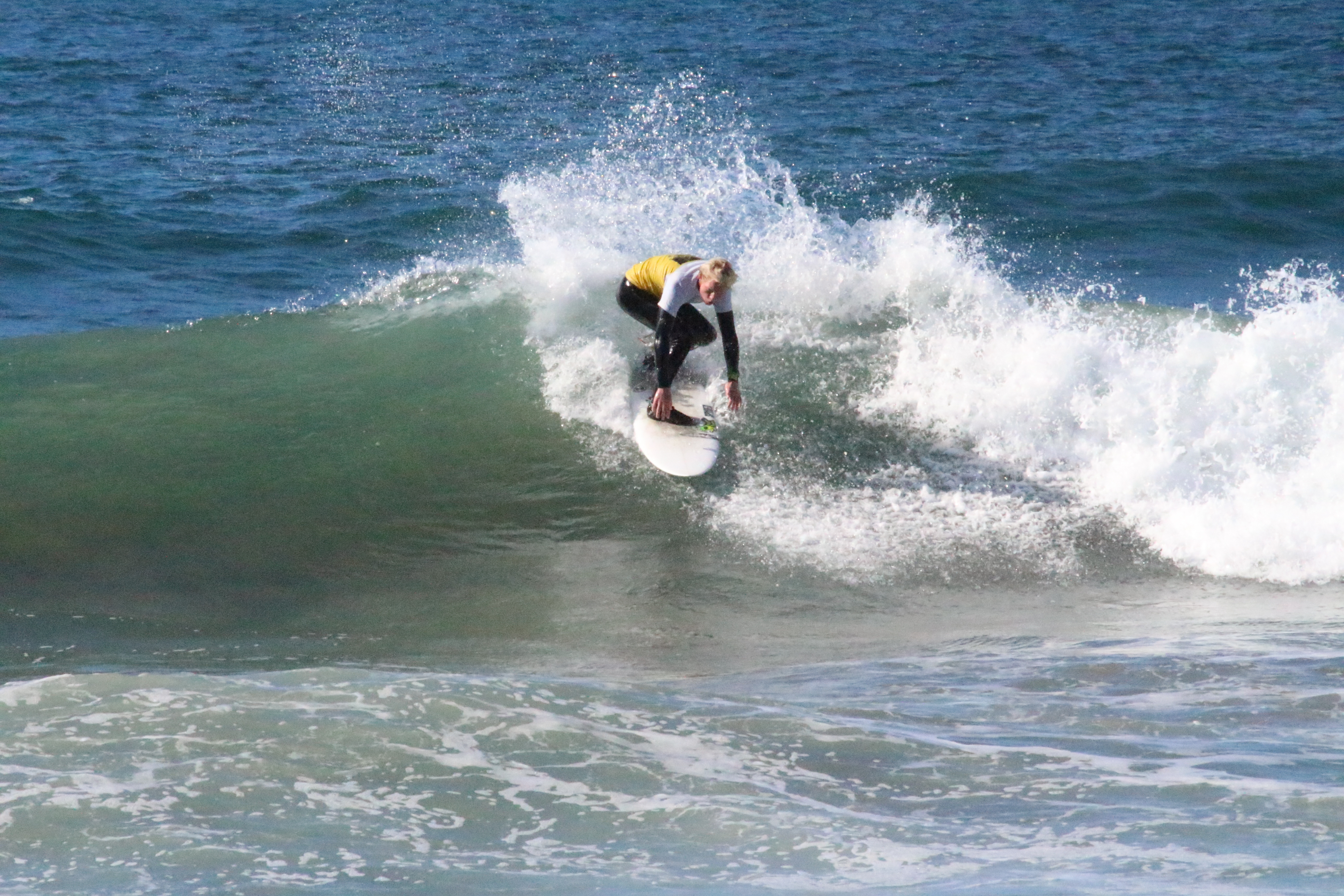 IMG_0221 Mira Costa Sophomore Beck Cherry surfs a wave in his heat for the All star competition. He placed first in the boys short board division.