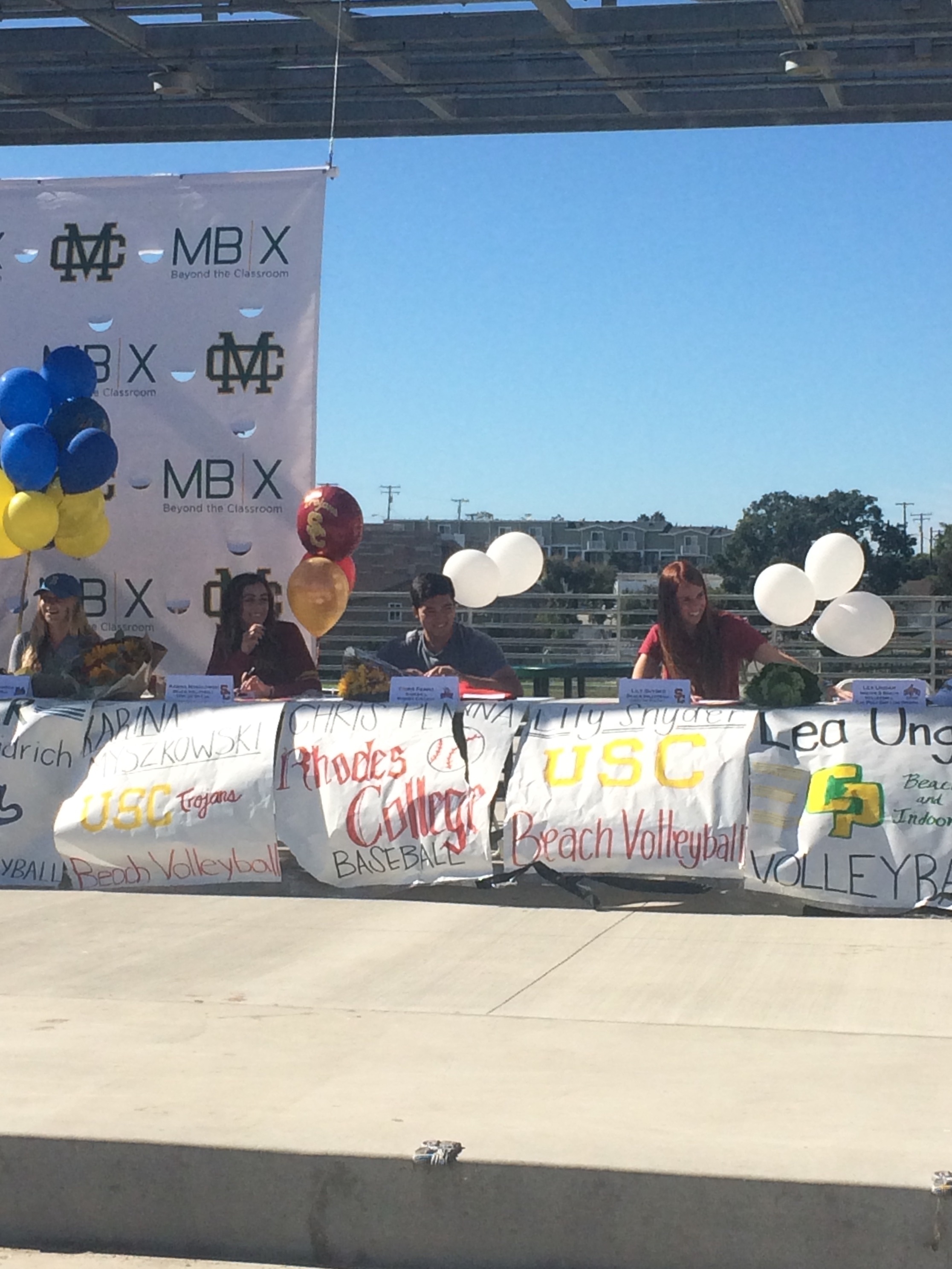 Twelve Mira Costa seniors took place in a college signing day at Mira Costa High School. From these twelve students, included Lily Snyder, Chris Penna, and Joey Acosta.